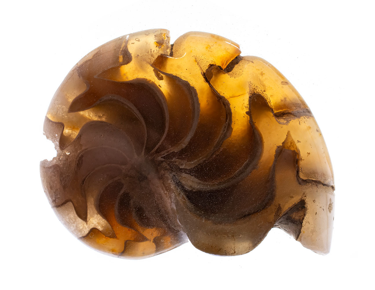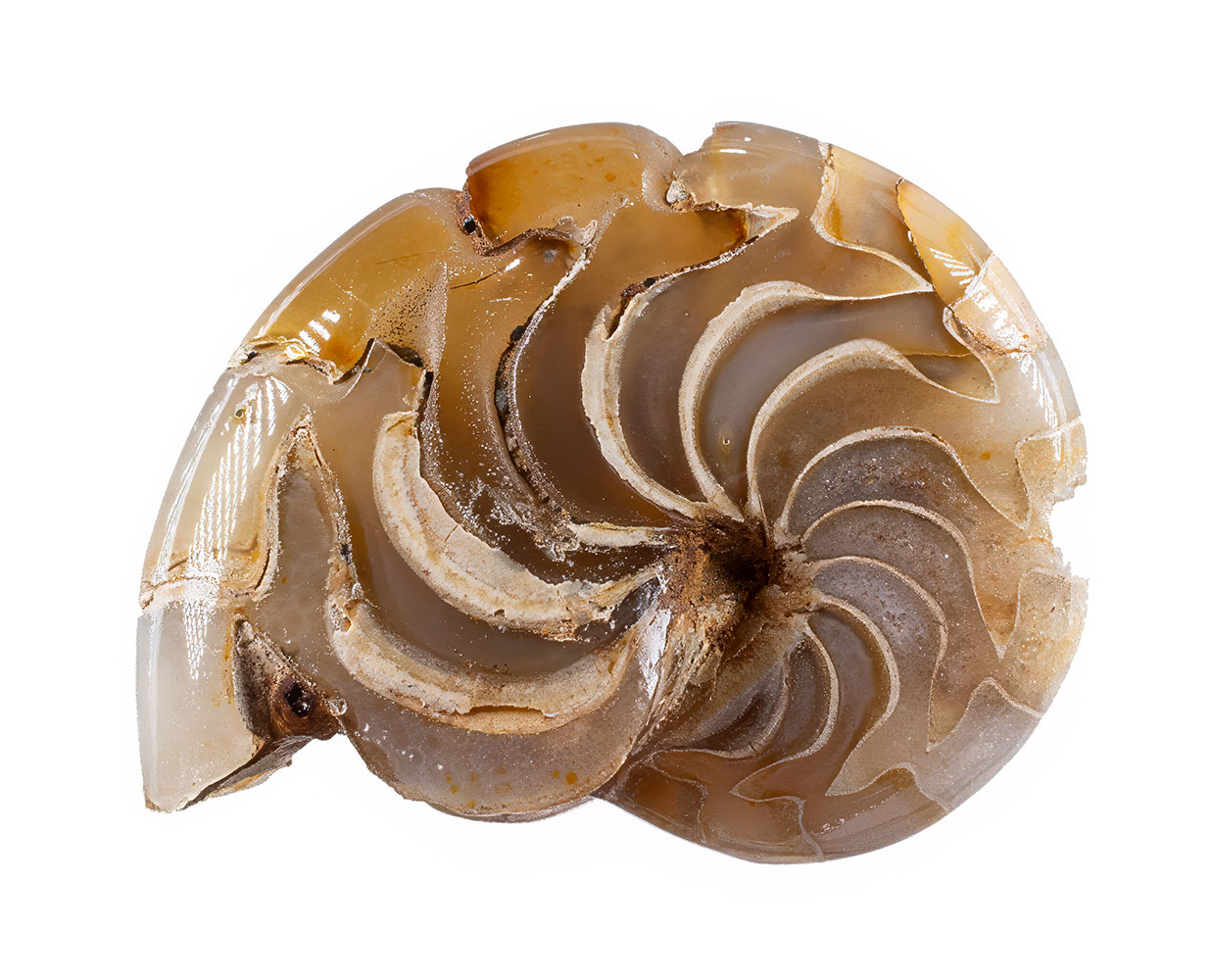 Aturia angustata is an extinct nautiloid from the Cenozoic era, known for its beautifully coiled, disc-shaped shell and intricate suture patterns. Unlike modern nautiluses, Aturia had a more compressed shell, making it a sleek and agile swimmer in ancient seas. It lived during the Eocene to Miocene, and its fossils are rare and highly prized. With its elegant form and evolutionary significance, Aturia angustata is a stunning reminder of the rich diversity of shelled cephalopods that once thrived in Earth’s oceans.