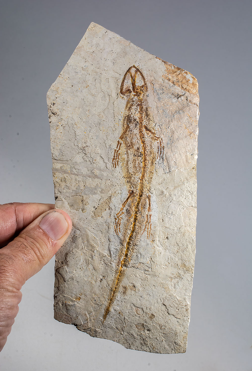 This Early Cretaceous salamander lived over 120 million years ago, in lush, freshwater environments alongside dinosaurs and early birds. Unlike modern salamanders, it often had external gills and a more primitive skeleton, offering a glimpse into the early evolution of amphibians. Fossils of these ancient salamanders are rare and sometimes beautifully preserved, showing fine details like soft tissue or skin impressions. Small but significant, they reveal how these ancient amphibians adapted and thrived in a world dominated by giants.