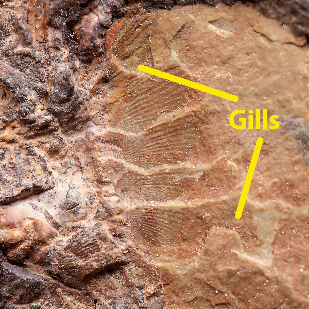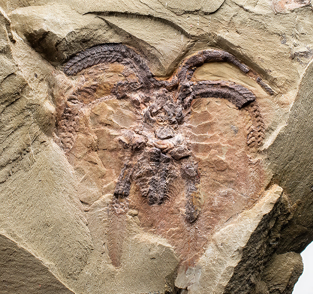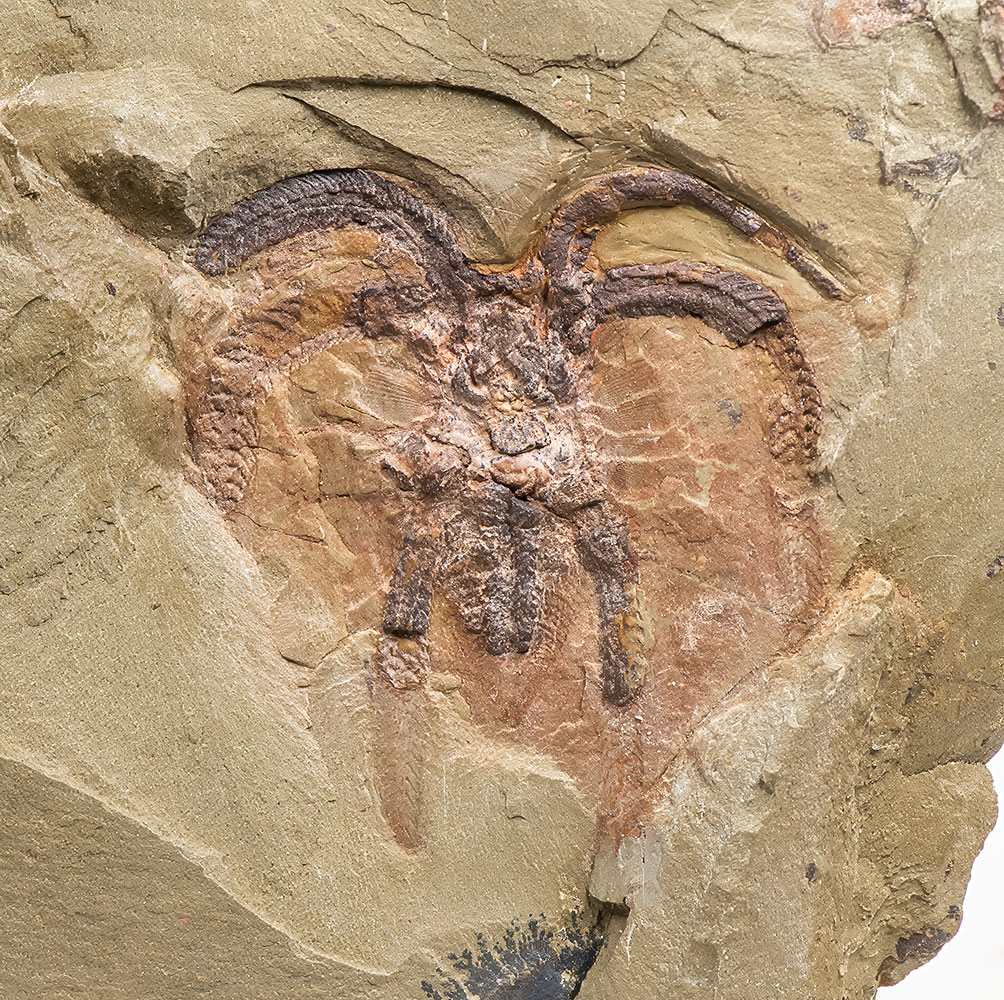 Unusually large 44mm arthropod on 127mm slab. A very clean and colorful example that even shows the gills. One of our best.