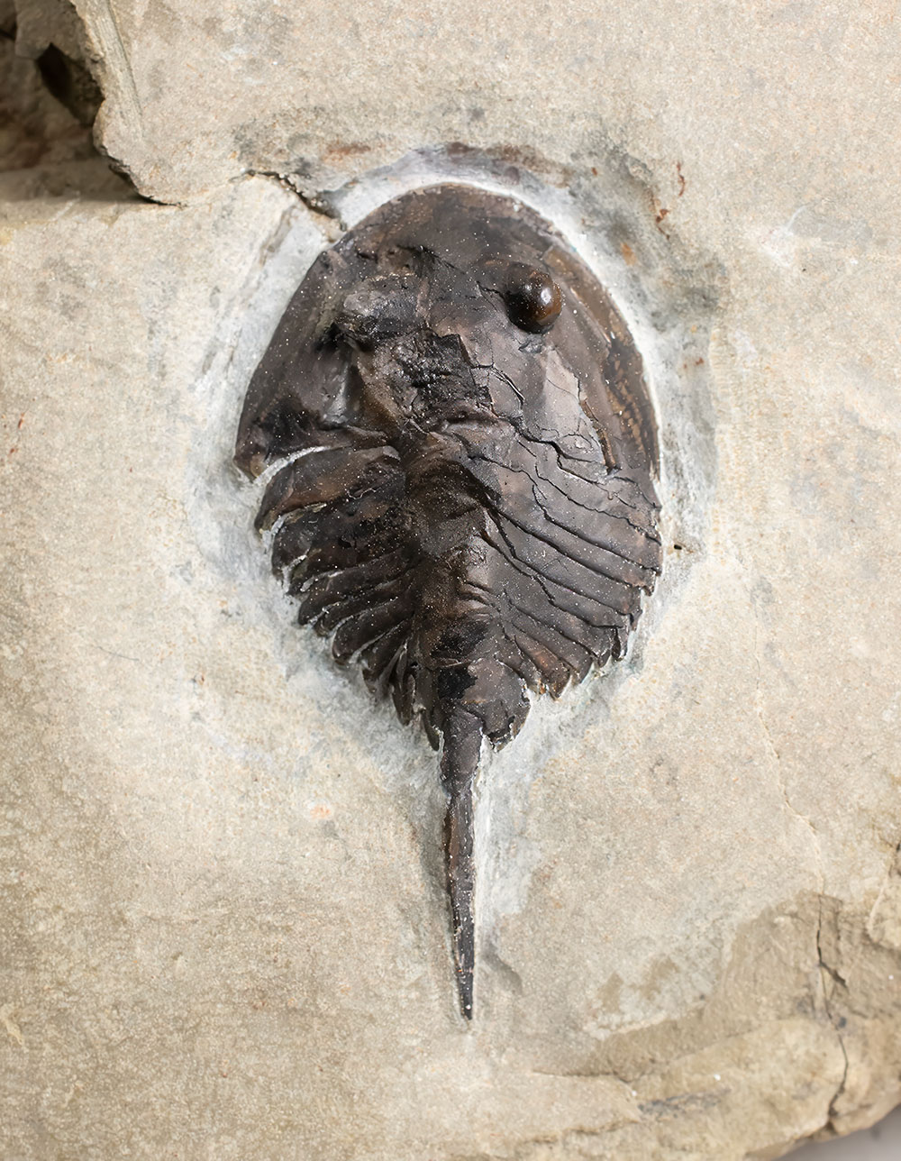 An incredibly interesting, undescribed 3D aglaspid from the Kushan Formation of China. 45mm on 95mm x 87mm slab