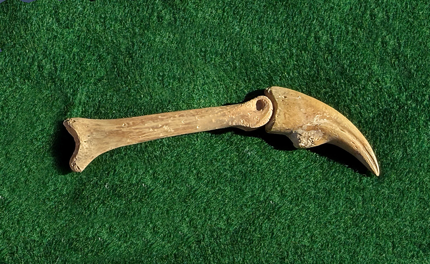 A fossil manual claw from a Late Cretaceous theropod, often labeled in the trade as an “ornithomimid hand claw.” In many cases, such material is attributed broadly to ornithomimosaurian dinosaurs, a group of fast, lightly built, ostrich-mimic theropods, though isolated unguals can sometimes be difficult to assign with certainty to a precise genus.
