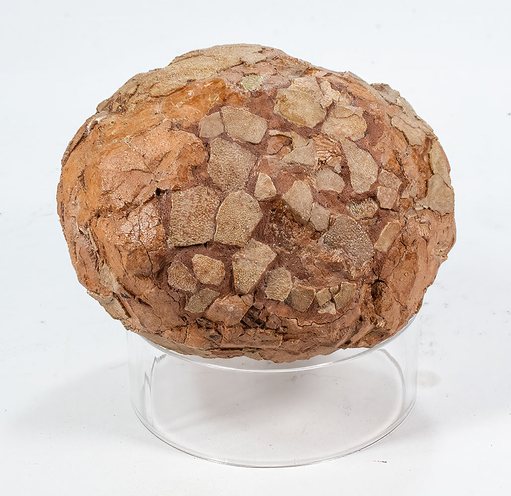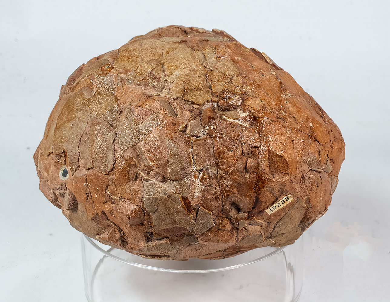 The specimen represents a large, elongated egg form, characteristic of sauropod reproductive strategy. Preservation commonly ranges from partial shell fragments to near-complete egg outlines embedded in matrix. The shell is generally composed of thin calcitic layers, often showing fine micro-structural detail under close examination.