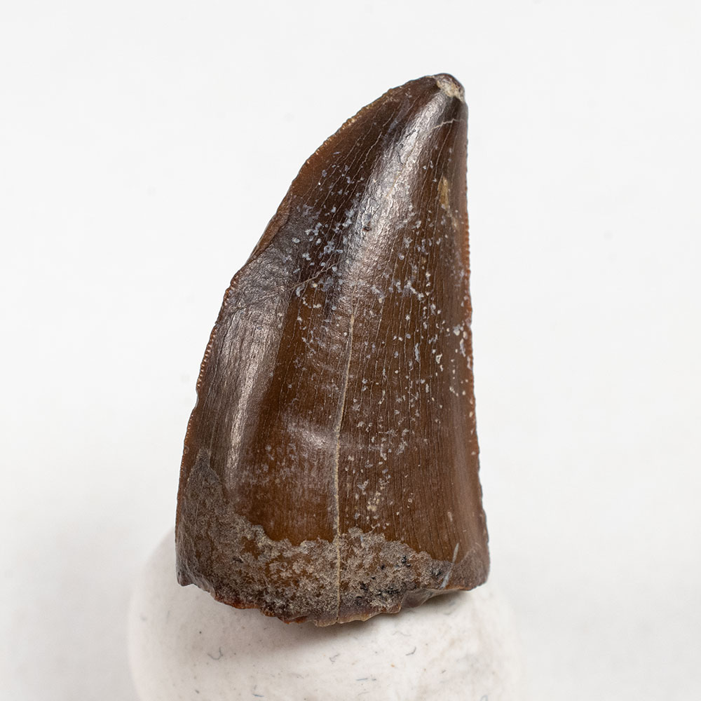 This theropod from Uzbekistan, dating to the Late Cretaceous (around 90 million years ago), was a fierce predator roaming the ancient floodplains of Central Asia. Its teeth are sharp, serrated, and slightly curved—perfect for slicing through flesh. Some belong to mid-sized carnivores, possibly related to early tyrannosauroids or carcharodontosaurs known from the region. These teeth are rare and valuable, offering a glimpse into a lesser-known ecosystem filled with unique dinosaurs. Each fossil tooth is a razor-sharp clue to a lost predator that once ruled the prehistoric landscapes of ancient Uzbekistan.
