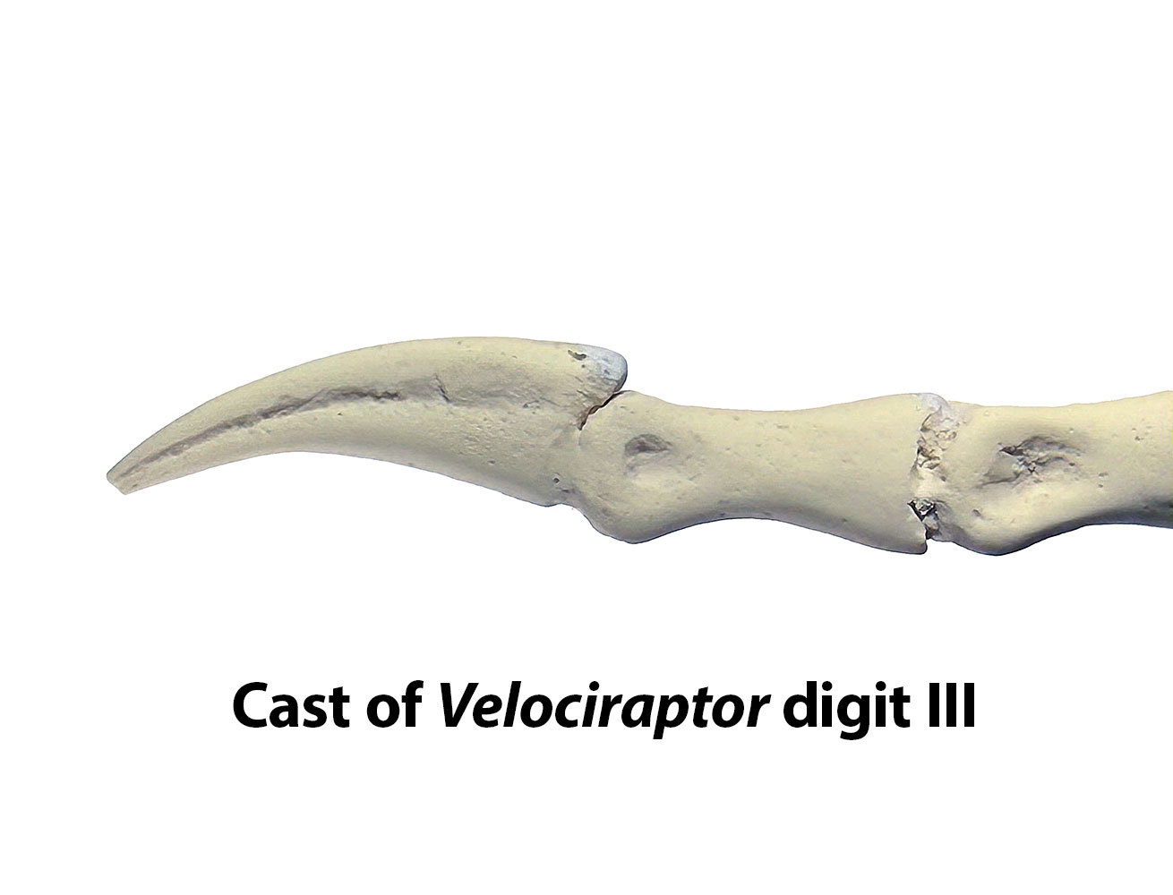 Very rare 39mm (1-9/16 inch) foot claw. Compare with the cast of digit III from Velociraptor – same shape, same size, but from North America!