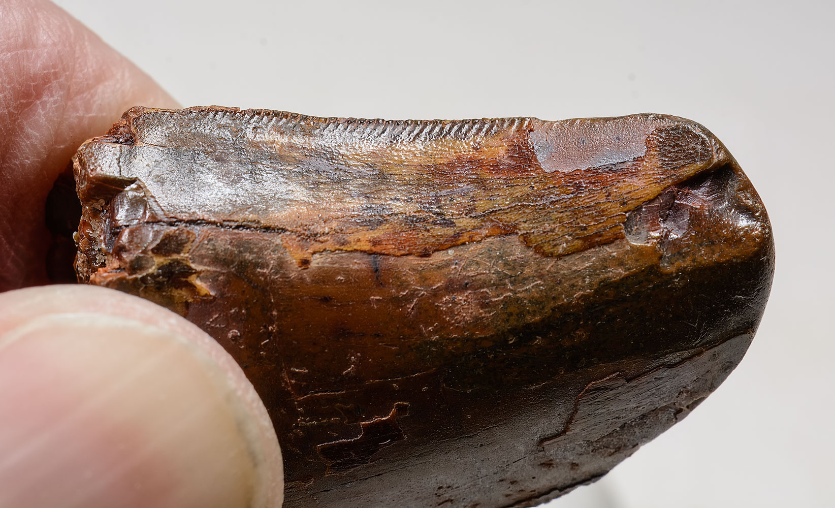 What else do we have to say other than “Tyrannosaurus rex tooth?” There are bigger and rarer theropods but nothing else has the cachet of T. rex. It’s the instant prize of any fossil collection. People who don’t collect fossils want a T. rex tooth. Even the Predator wanted a skull for his collection.