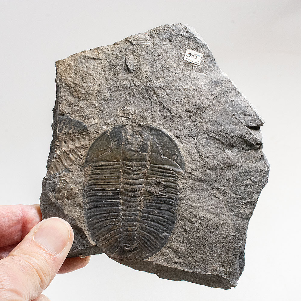 Big 68mm trilobite on 132mm slab. These are almost always missing the free cheeks so an example this complete is very rare.