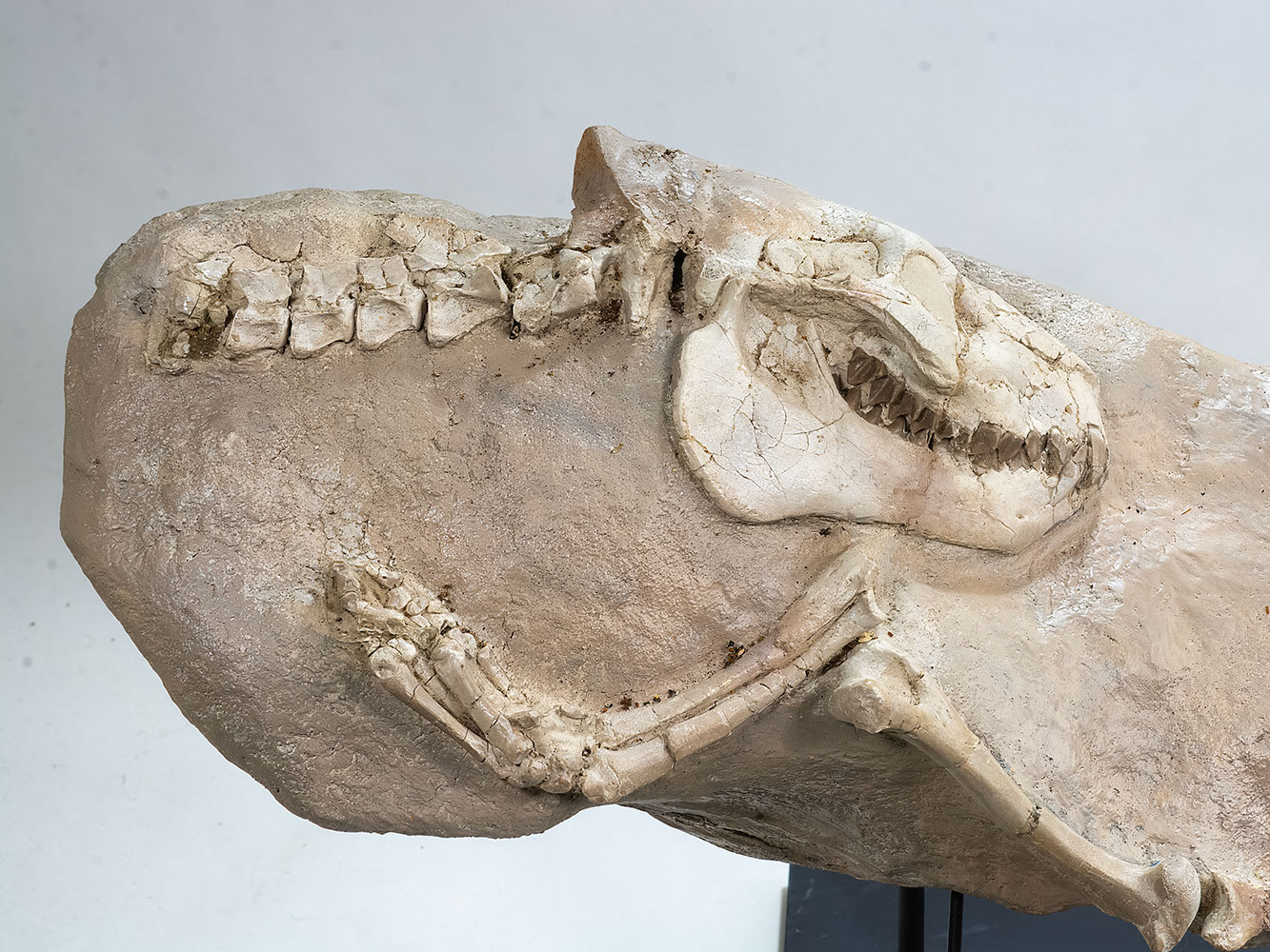 An oreodont is an extinct mammal that lived in North America during the Eocene and Oligocene epochs, from approximately 55 to 33.9 million years ago. They were herbivorous artiodactyls, which means they had an even number of toes and were related to modern-day pigs, hippos, and camels. Oreodonts were relatively small, ranging from the size of a small dog to that of a sheep. They had distinctive skull features, including a pair of large, blunt, and ever-growing teeth, which they likely used for grinding tough vegetation. Oreodont fossils have been found in various locations across North America and have provided valuable insights into the continent’s ancient ecosystems.