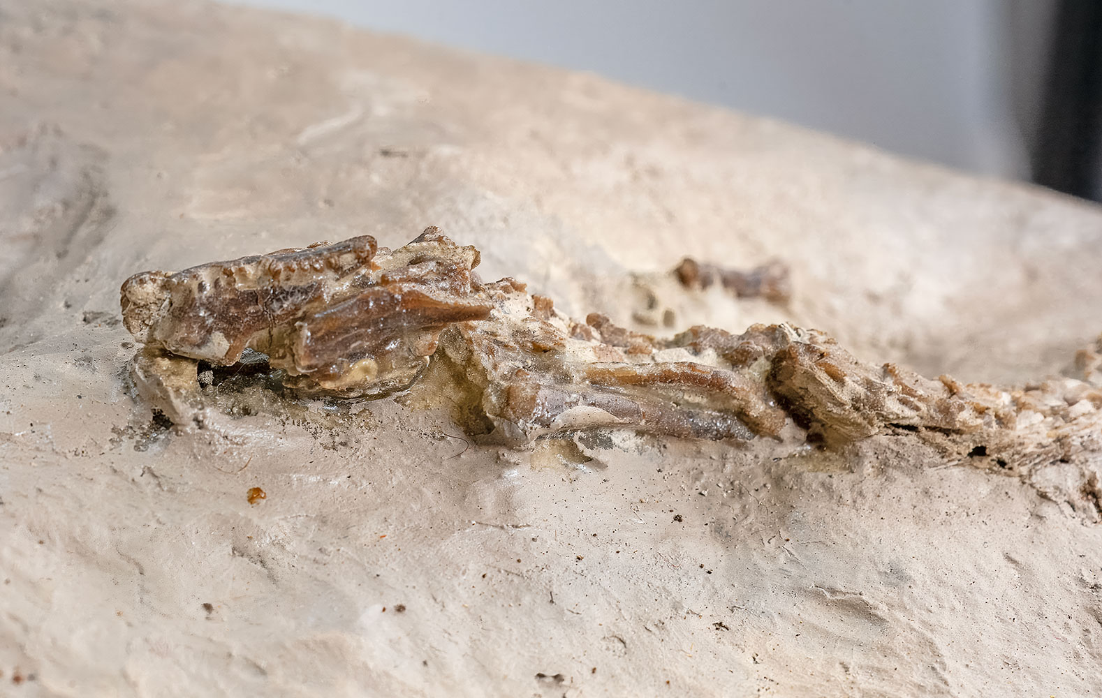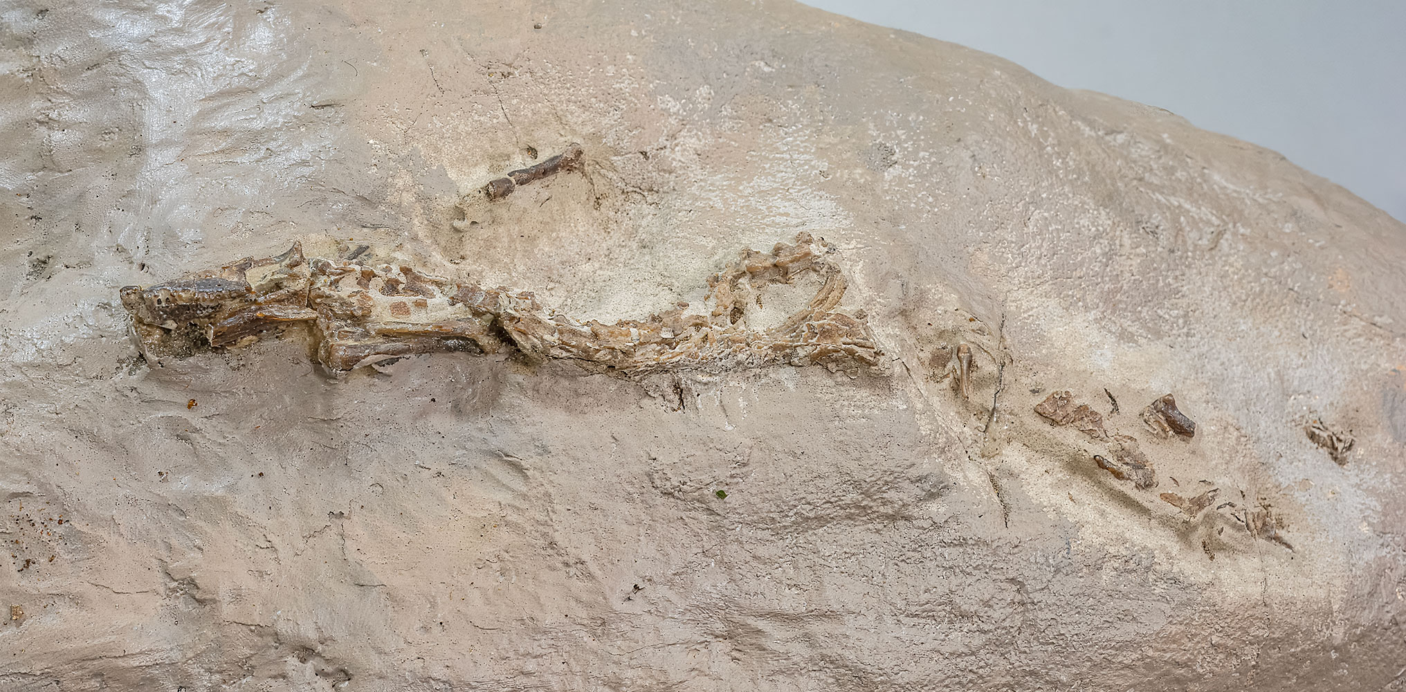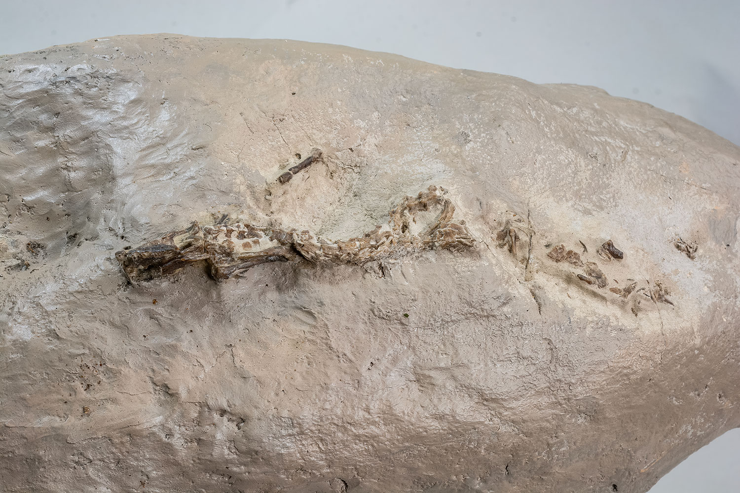 Big 30 inch block with excellent partial oreodont skeleton and 5.5 inch complete lizard that is undescribed and thus new to science