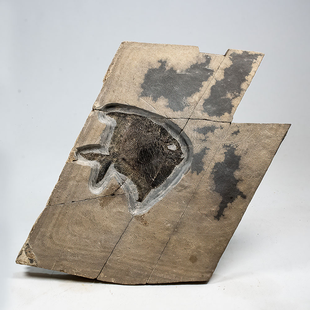 Amphicentrum was a small, deep-bodied fish that lived during the Pennsylvanian period, around 310 million years ago. With its tall, disc-like shape and fan-like fins, it likely swam slowly through ancient swamps and coal forests, possibly feeding on small invertebrates or plant material. Its fossils are often beautifully preserved in black shale, showing fine details of its scales and fin rays. Rare and distinctive, Amphicentrum offers a vivid glimpse into the diverse aquatic life of Earth’s Carboniferous coal-age ecosystems.