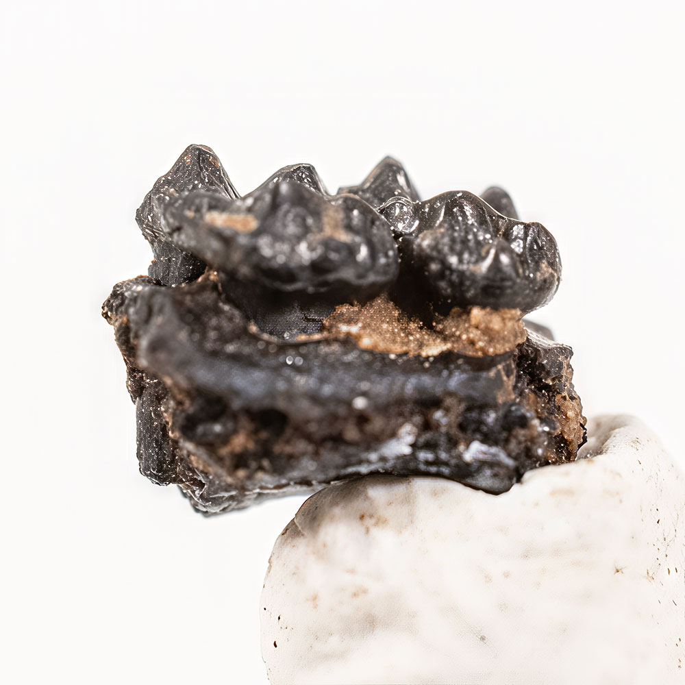 A rare fossil specimen of Necrolemur erinaceus, a small Eocene primate from Europe, often compared to modern tarsiers due to its distinctive cranial features and likely nocturnal lifestyle. This species represents an important branch of early primate evolution, illustrating the diversity of small arboreal mammals during the Eocene.