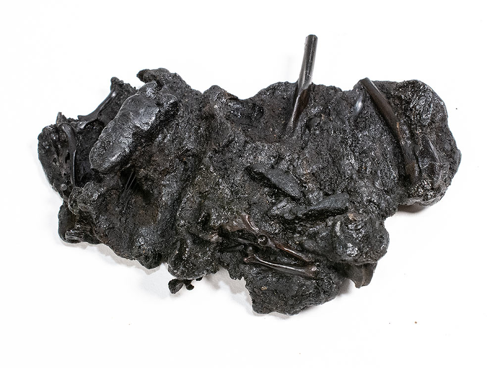 Two pocket mouse legs and pelvis with insect parts on 79mm matrix from the Tar Pits