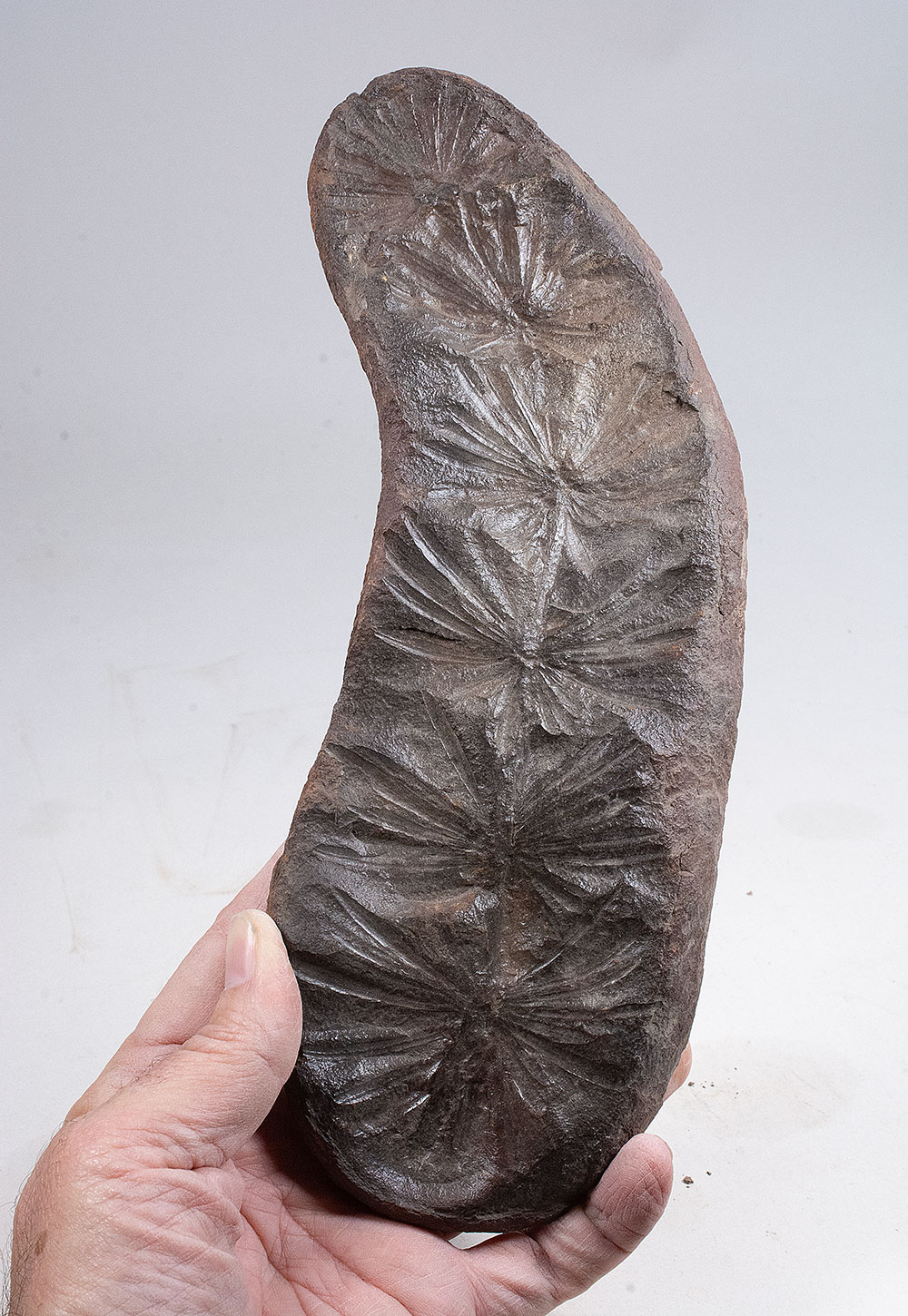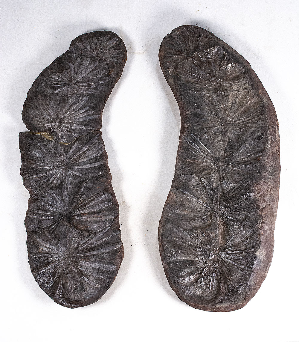 A preserved fossil of Annularia stellata, a distinctive Carboniferous plant known for its elegant, star-shaped whorls of leaves. This species represents the foliage of ancient horsetail relatives, linked to Calamites. They thrived in vast coal-forming swamp forests over 300 million years ago.